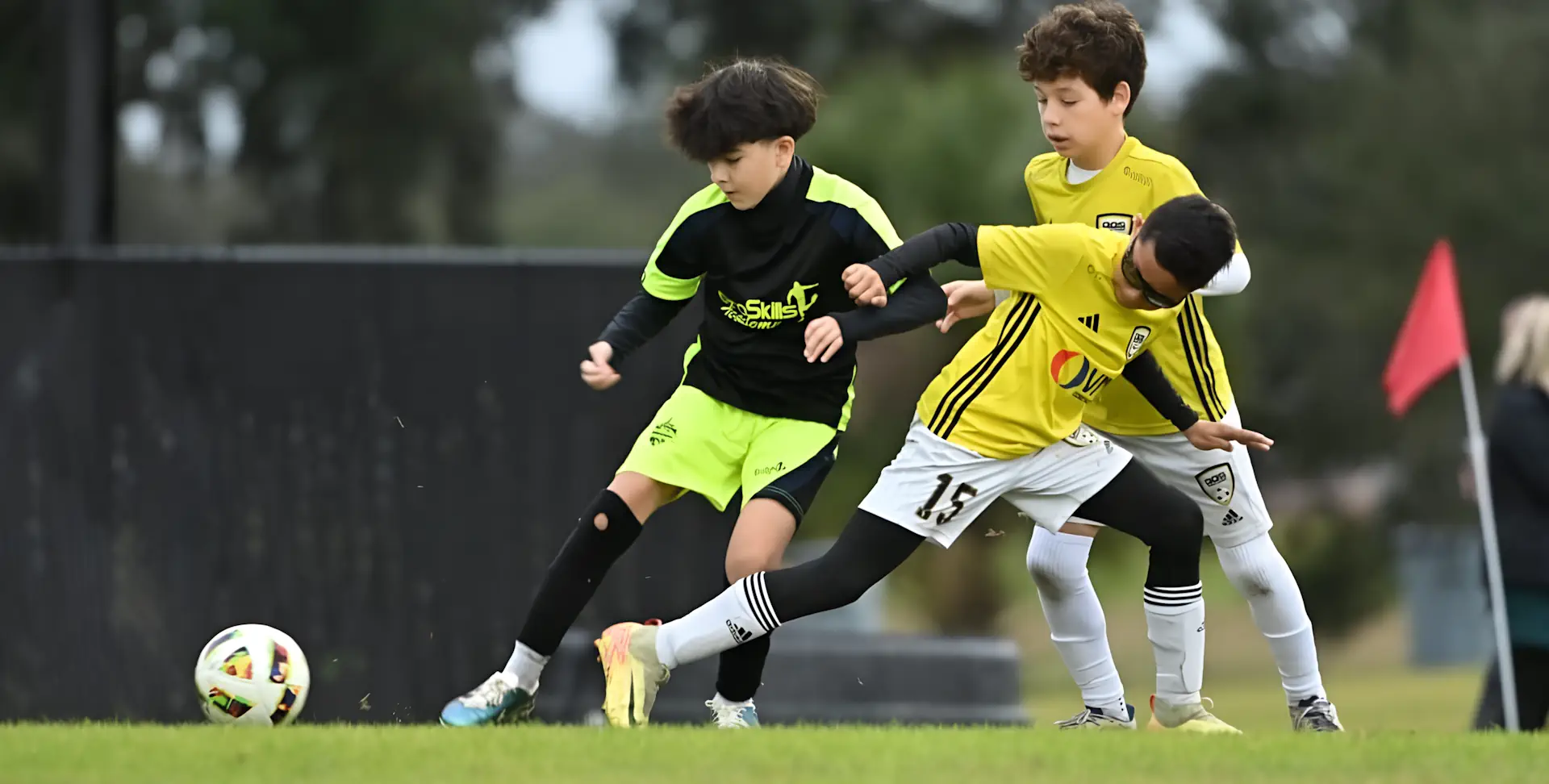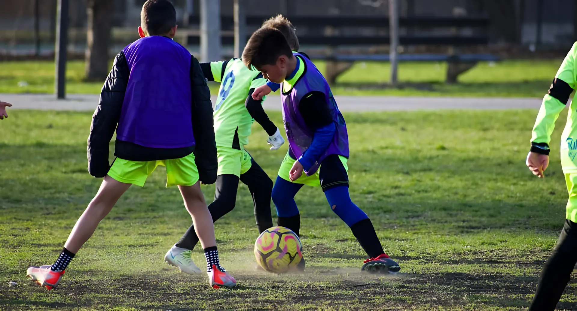 Core technical skills — passing, receiving, dribbling, shooting — introduced through structured practices and small-sided games.